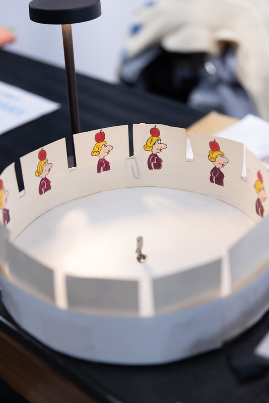 Venez voir et jouer avec les jouets optiques comme le Zootrope, le Folioscope, le Phénakistiscope et le Thaumatrope!